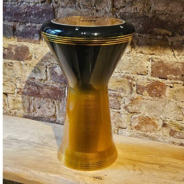 Sonika Percussion Aluminum Darbuka has rounded edge, 6 tuning screws hidden on the top of the head and head is covered with synthetic skin. All market standard skin heads are compatible with our 23cm (9”) diameter aluminum darbuka.