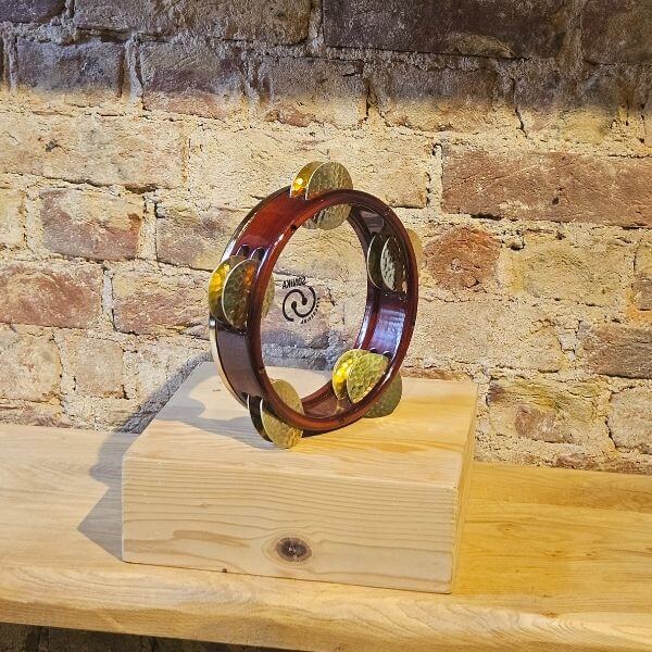 The riq features hammered brass cymbals, providing a clear and controlled jingle sound. It performs well in both stage and studio environments.