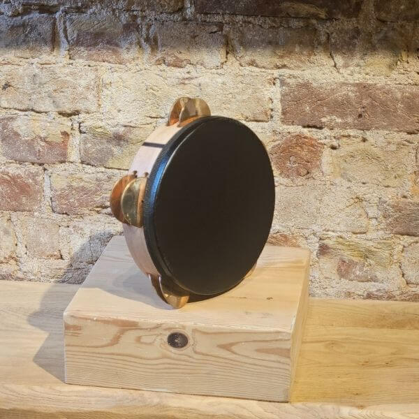 The riq features bronze cymbals, producing a controlled, articulate jingle sound that blends well in both traditional and modern musical settings.